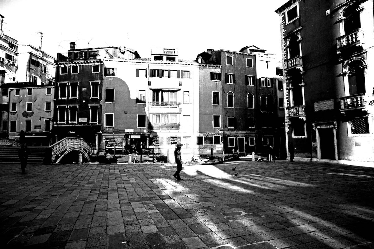Camminando per le calli, capita di incrociare lo sguardo preoccupato dei pochi passanti, qualcuno indossa una mascherina di protezione. Ci si tiene a debita distanza, ci si guarda con una certa diffidenza. Molte saracinesche sono abbassate.