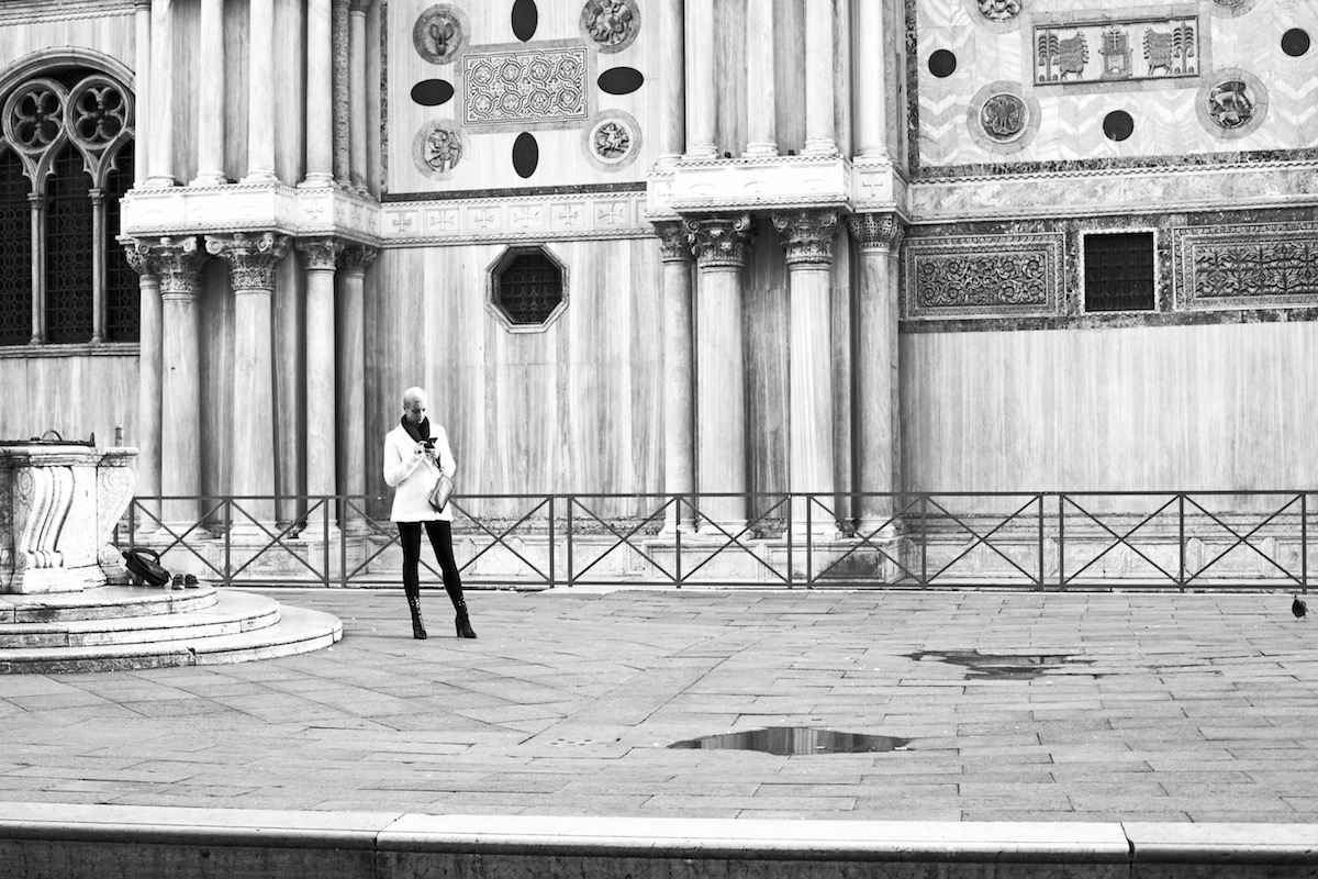 Oggi il sole si vuole far spazio tra le nuvole e l’aria è meno pungente, l’arrivo della primavera sembra ormai imminente. Nonostante ciò, la città non è più la stessa, proprio come succede a noi nel momento in cui siamo in preda a qualche preoccupazione : i caffè sono vuoti ed i tavolini tutti ordinati e solitari; non si vedono personaggi eccentrici, coppie fresche od attempate sorseggiare un cocktail o il caffè del doge, la musica suonare e perché no anche qualche schiamazzo.