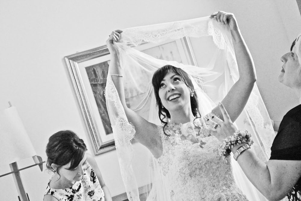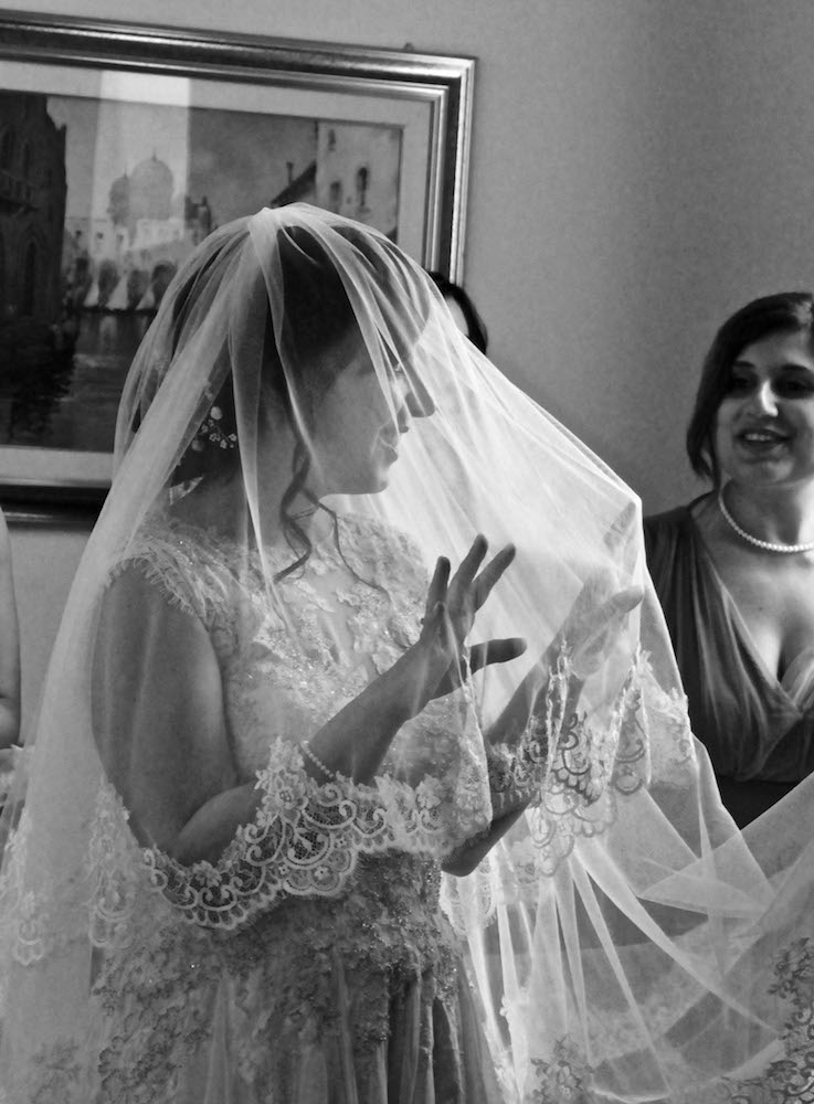 La sposa ci accoglie, con un sorriso radioso, un abbraccio affettuoso di benvenuto ( era un pò che non ci vedevamo), bellissima con il suo abito lungo, bianco, lo sguardo non lasciava trasparire alcun nervosismo.
