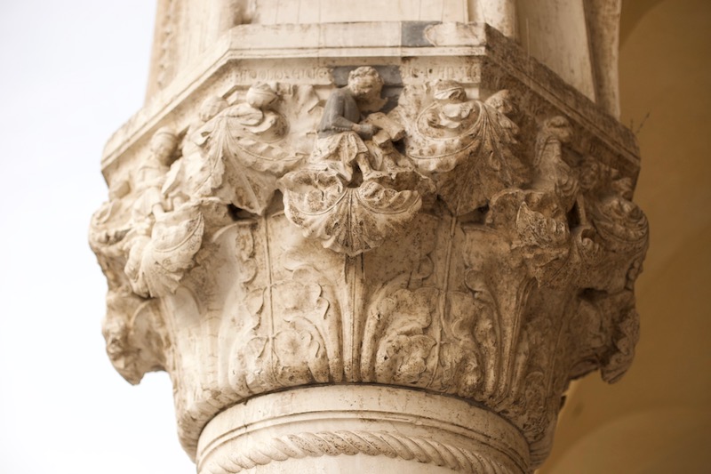 Passeggiando lungo il colonnato, guardando all’insù, avrete notato i trentasei capitelli. Varrebbe proprio la pena prendersi del tempo per osservarli con attenzione.