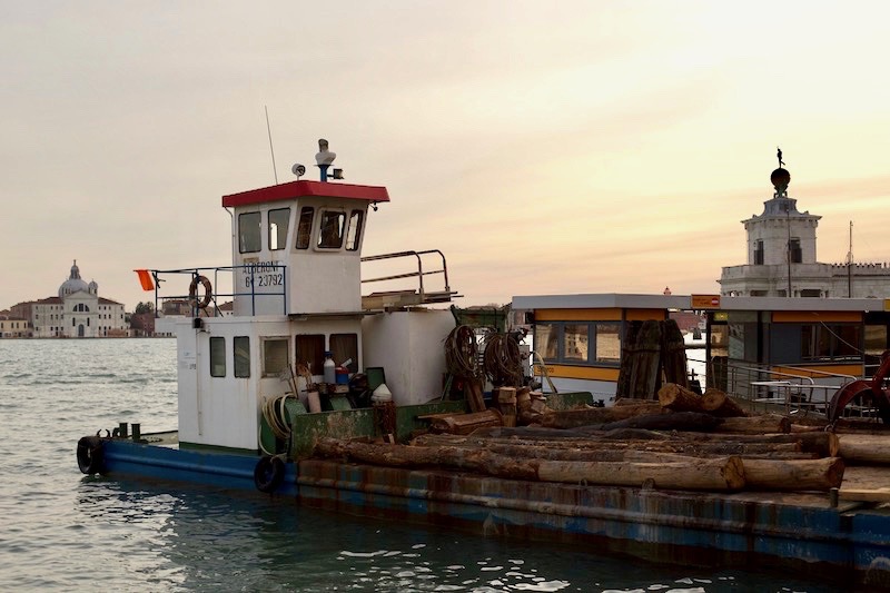Questa volta però la mia attenzione viene catturata da un’ immagine che all’apparenza non ha molto di poetico: una chiatta con dei grandi ed imponenti tronchi, disposti ordinatamente uno accanto all’altro;