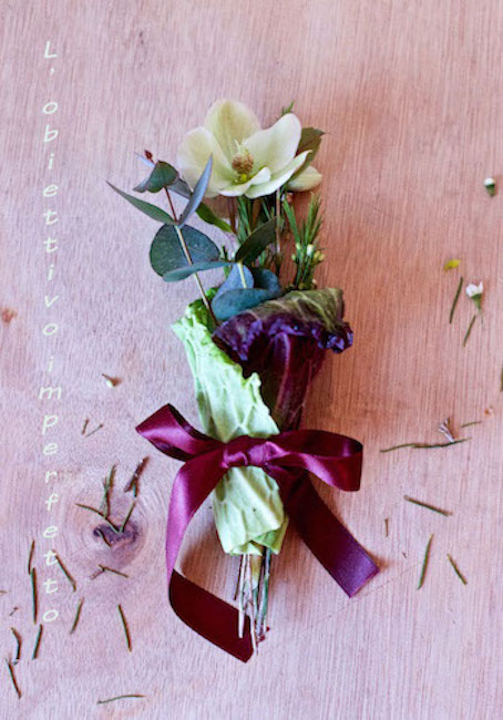 Magari una foglia di verza dal colori verde e viola potrebbe proprio fare al caso suo, il tutto abbinato ad una cintura: un nastrino color vinaccia.